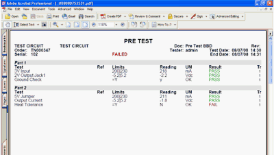 Certificates of compliance may be issued for products which pass all tests. Tests are created by engineers and may be grouped into sets and stages within sets. This allows a product to be tested at various stages of manufacture.